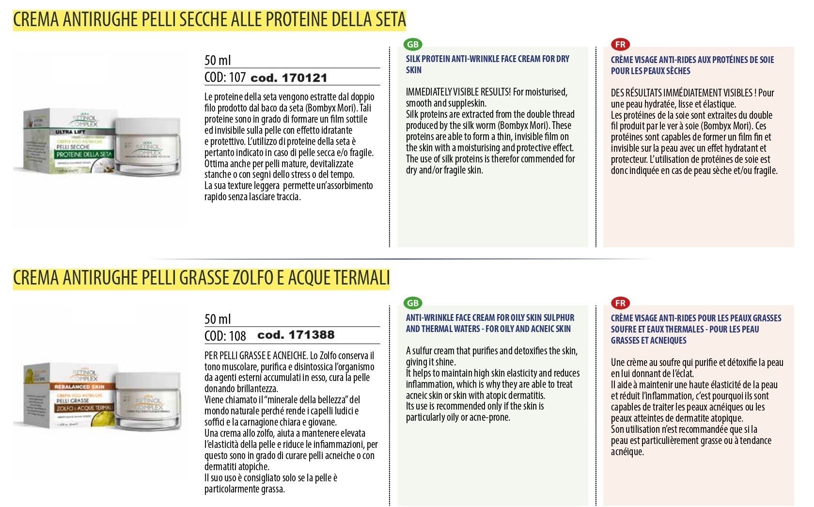 pelli secche alle proteine della seta - La formula innovativa della linea RETINOL COMPLEX® ULTRA LIFT contiene una combinazione di attivi cellulari che agiscono in armonia con la pelle. Se usata regolarmente, questa formula accelera il tasso di rigenerazione cellulare e quindi il ringiovanimento della pelle.