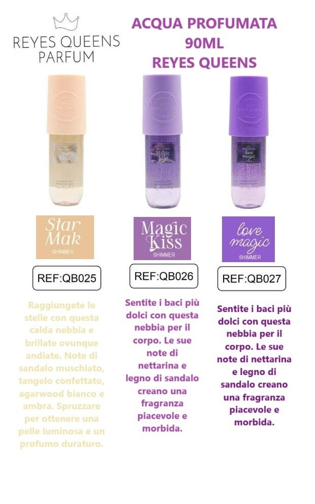 passione temptation shimmer - velvet petals shimmer - ocean shimmer - satr mak shimmer - magic kiss shimmer - love magic shimmer : queste fragranze sono uguali a quelle classiche con aggiunta di brillantini per luccicare.